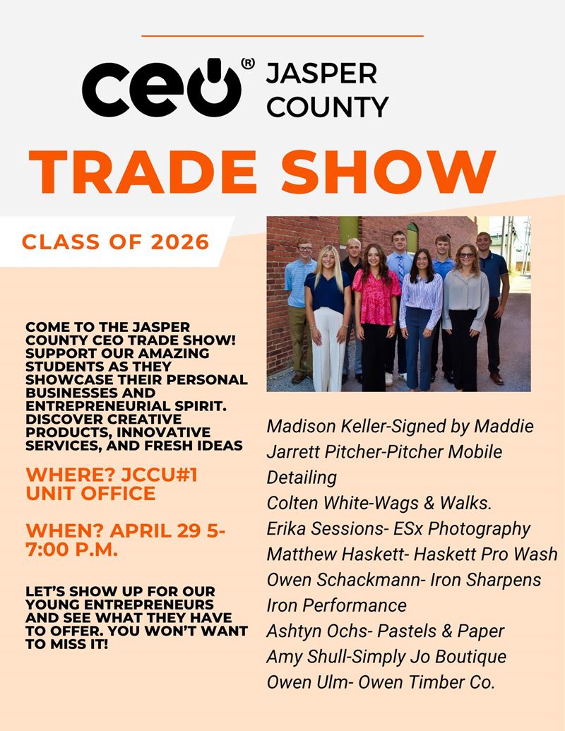 Jasper County CEO Class of 2026 is comprised of 9 students. Students are selected from Newton Community High School